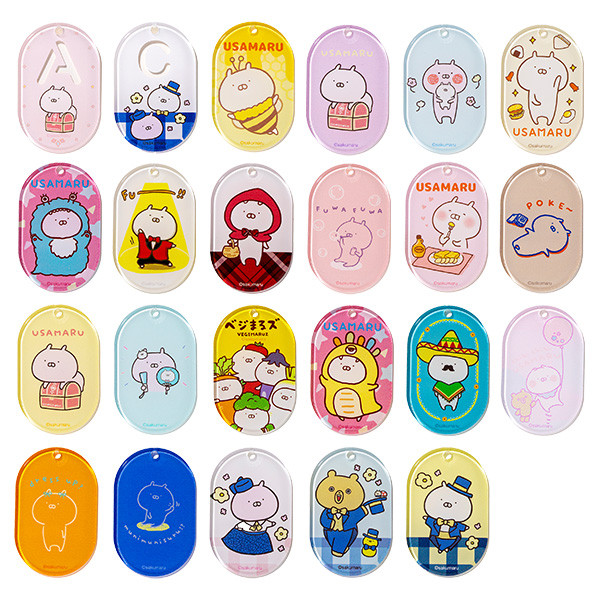 うさまる展アートと人気スタンプをセレクトしたスペシャルなアクリルキーチェーン。※ランダム全20種