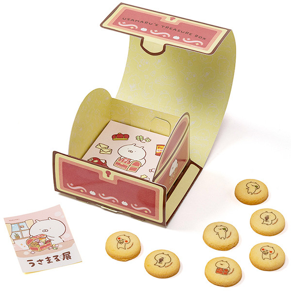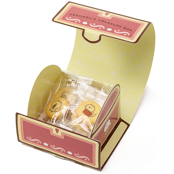 うさまるプリントクッキーとステッカーが入った特別な宝箱。食べ終わった後も小物入れとしてご使用いただけます。