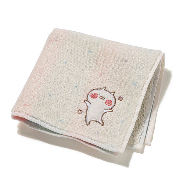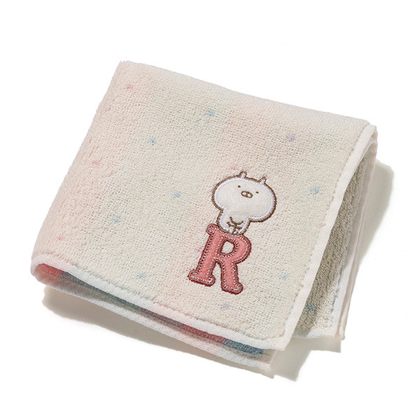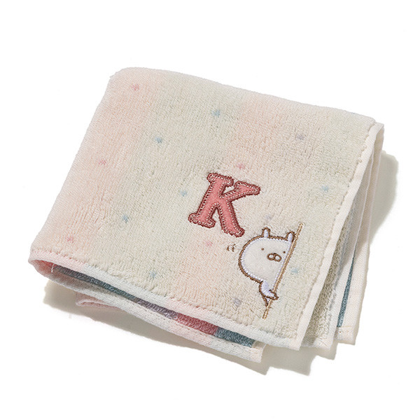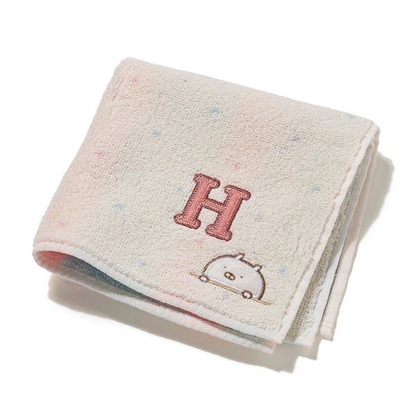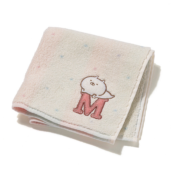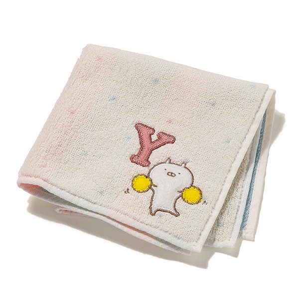 刺繍でイニシャルとうさまるが施されたギフトにもオススメなミニタオルです。